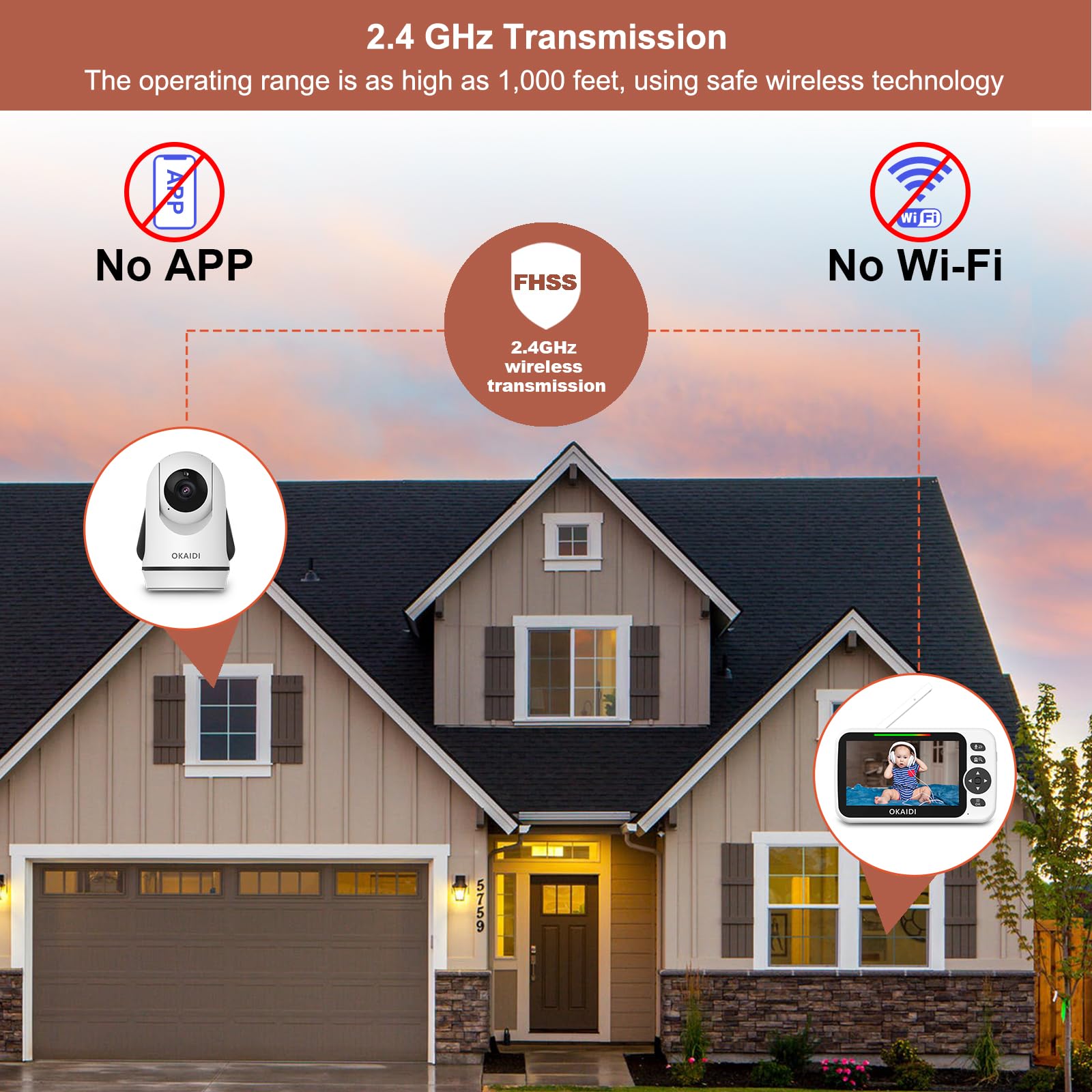 - ♥ 【Secure Baby Monitoring】Experience the Ultimate in Baby Monitoring Security with Our Advanced 2.4GHz FHSS and Digital Encryption Technology. No WiFi, No Apps, Your Privacy Can be Protected. With a Transmission Range of up to 1,000 Feet and Low Latency, You Can Track Your Baby's Every Move from anywhere in Your Home.
